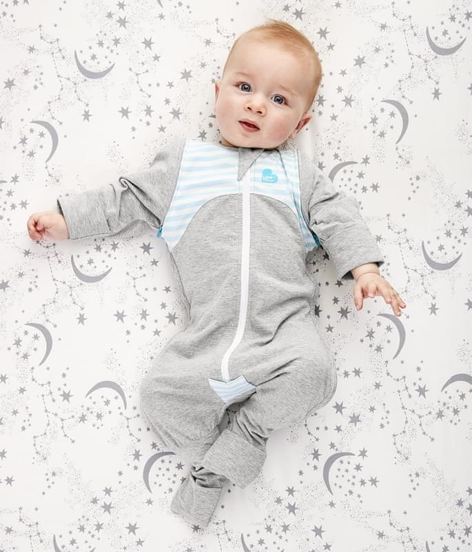Ta pižama ima zgornji del, ki se prilega čez prsi, in je posebej zasnovana SAMOPOMIRUJOČE™ roke in noge za udoben in prijeten občutek Pižama ima tudi dve snemljivi ROKE GOR™ krilca, ki naj ostanejo pritrjena na pižamo, dokler dojenček ni pripravljen na prehod Po nekaj nočeh odstranite krila in pritrdite SAMOPOMIRUJOČE™ roke, pri čemer pustite stopala zataknjena med nogami