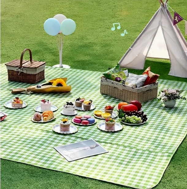 Dno odeje je izdelano iz materiala, odpornega na vlago, ki ščiti pred mrazom in mokro zemljo. Z lahkoto ga razprostrete po travi, pesku ali celo rahlo vlažni zemlji.Enostaven za zlaganje