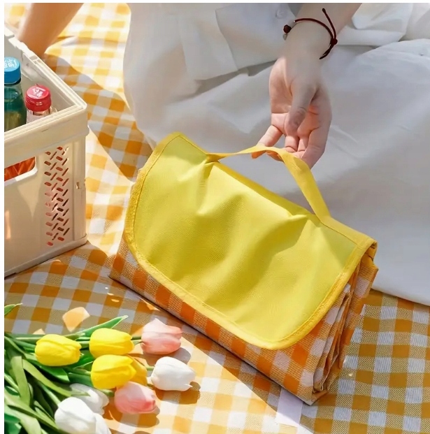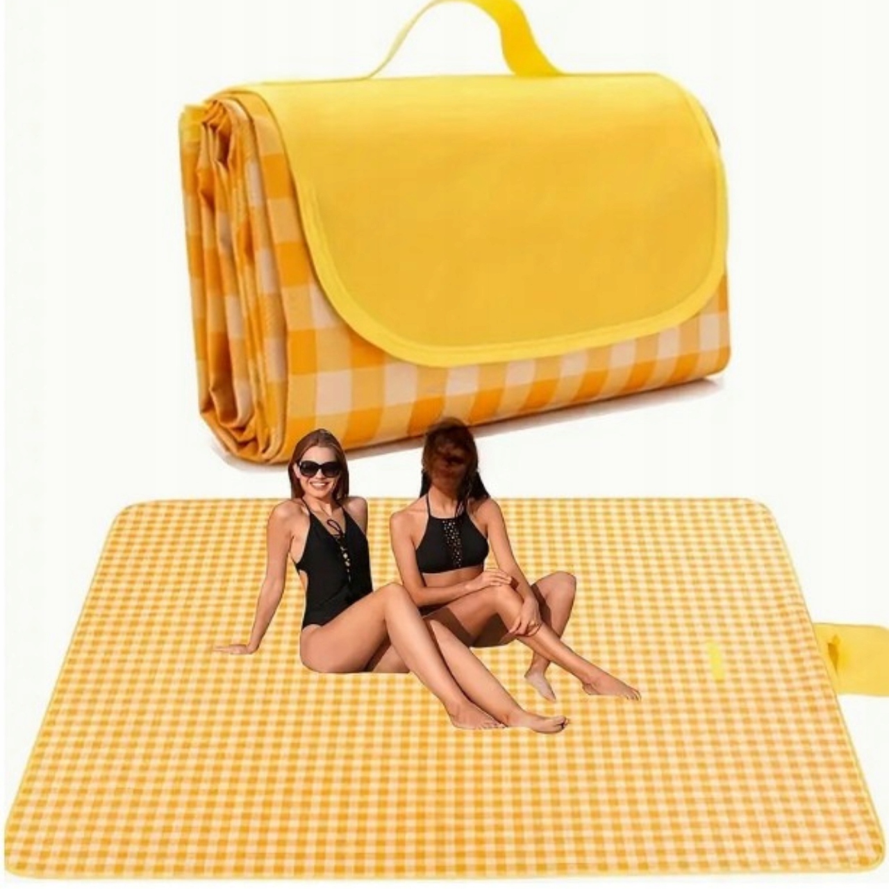 shumee Izolirana odeja za plažo za piknik, velika nepremočljiva podloga 100x150 cm, rumeno-bela