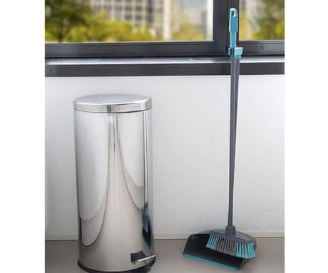 Ta komplet smetišnice in ščetke je zasnovan z mislijo na vaše udobje. Dolg 93 cm ročaj preprečuje nepotrebno upogibanje in tako zmanjša tveganje za težave s hrbtom. Metla je opremljena z ergonomskim ročajem, ki se udobno prilega roki, priložena smetišnica pa ima gumijast rob, ki omogoča enostavno zbiranje umazanije, ne da bi ta padla nazaj na tla. Ne glede na to, ali gre za drobtine po večerji ali druge majhne ostanke, ta komplet omogoča enostavno in hitro čiščenje.