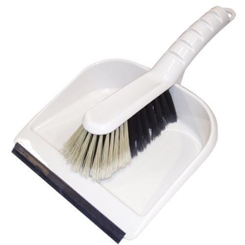 Komplet lopate in metle. Metlica ima gumijast rob za boljše zajemanje. Metlo lahko pritrdite na ročaj lopate in jo obesite.