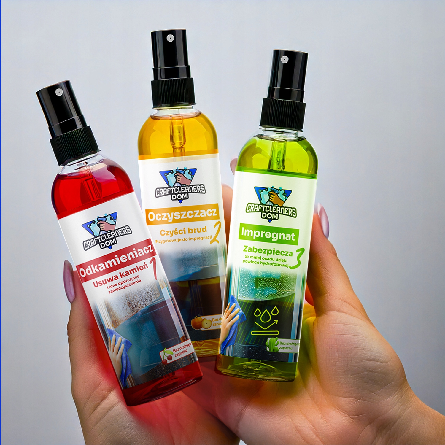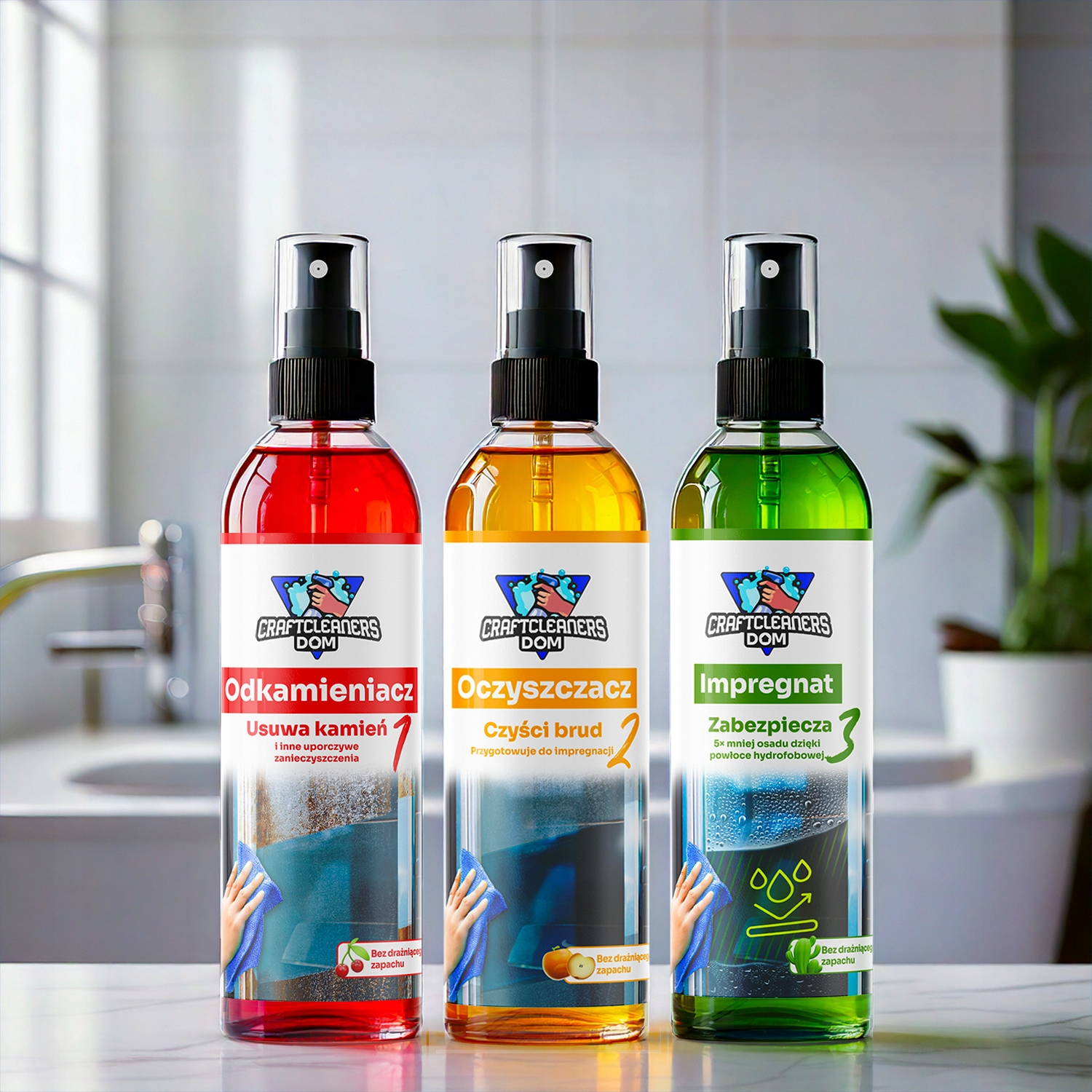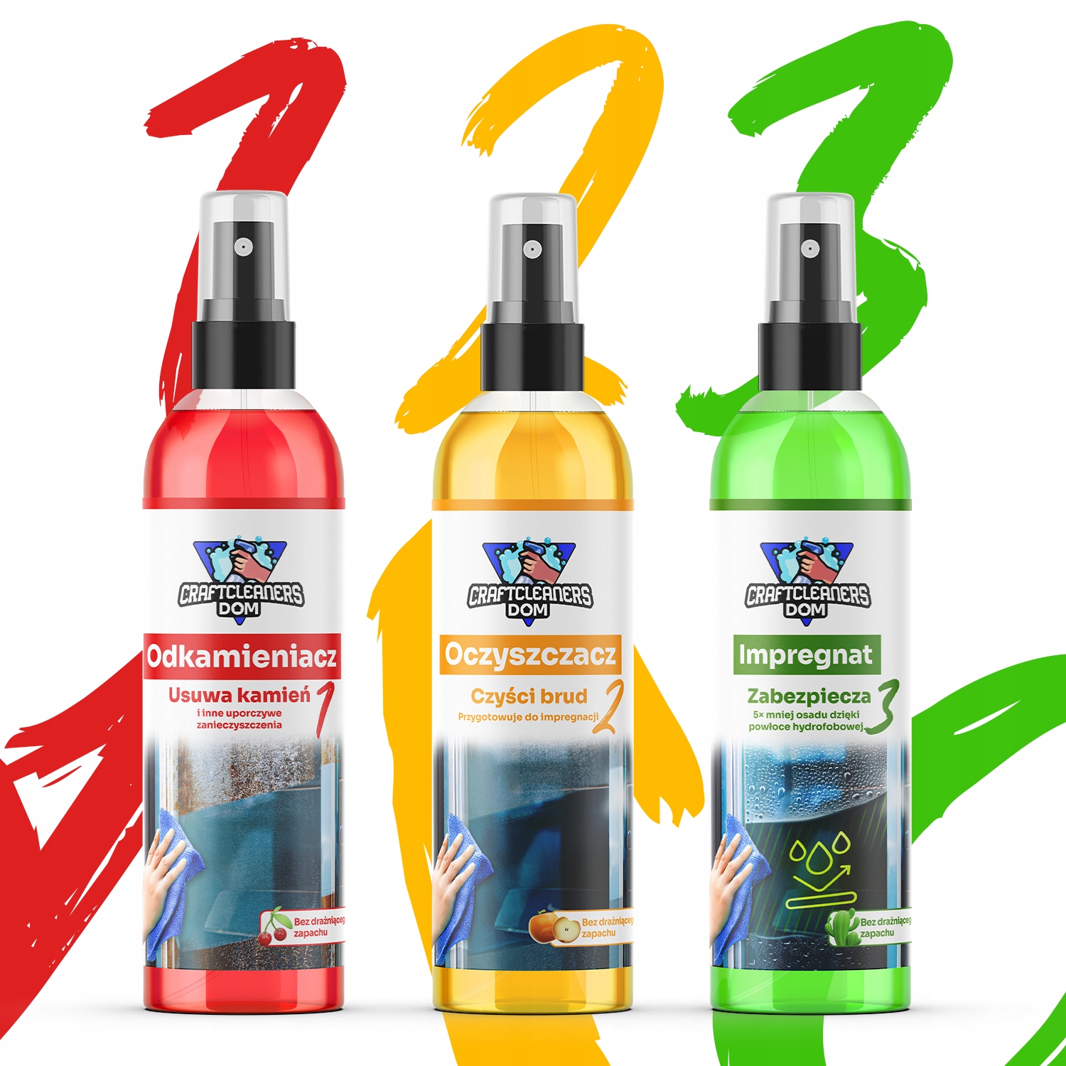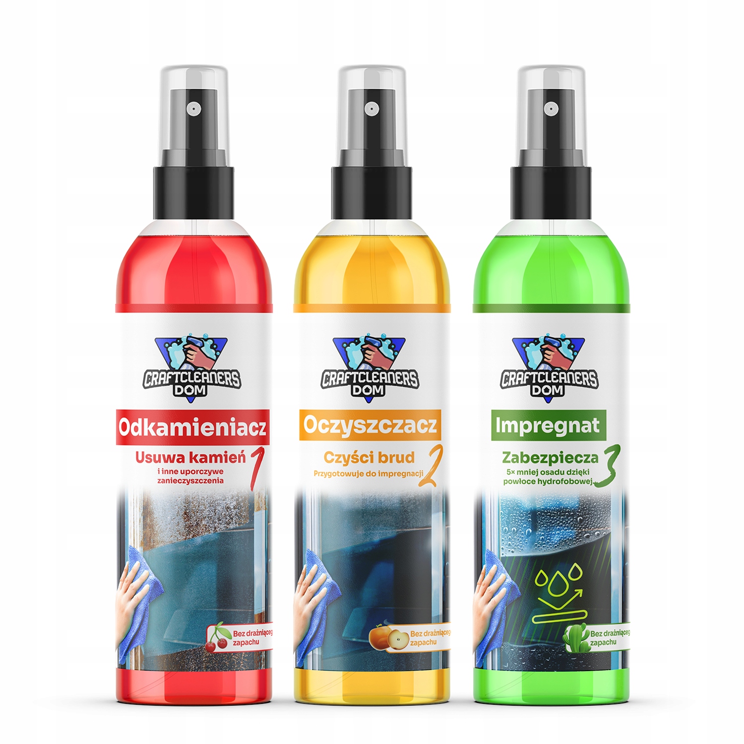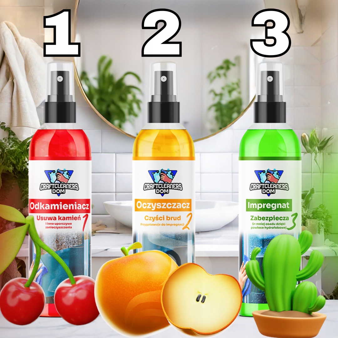 Hidrofobni 3v1 komplet za kopalnico in kuhinjo Sredstvo za odstranjevanje vodnega kamna + čistilo + impregnacija 3×100ml