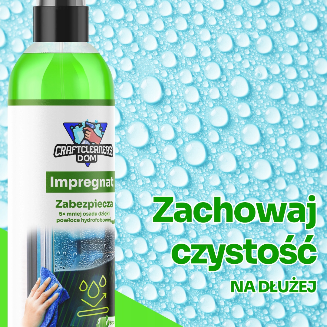 Zahvaljujoč nanotehnologiji ustvarite trpežen, hidrofobni premaz na površinah, ki učinkovito odbija vodo in umazanijo. Okna, tuš kabine, pipe in ploščice ostanejo sijoče in čistejše veliko dlje – celo 5-krat manj vodnega kamna in usedlin vsak dan!