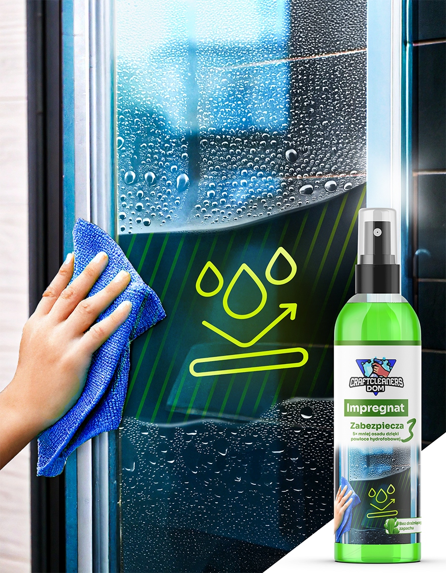 ▸ Vsaka 100 ml steklenička zadostuje za večkratno uporabo – odvisno od površine lahko večkrat zaščitite celotno kabino, več ogledal, pip in oken.