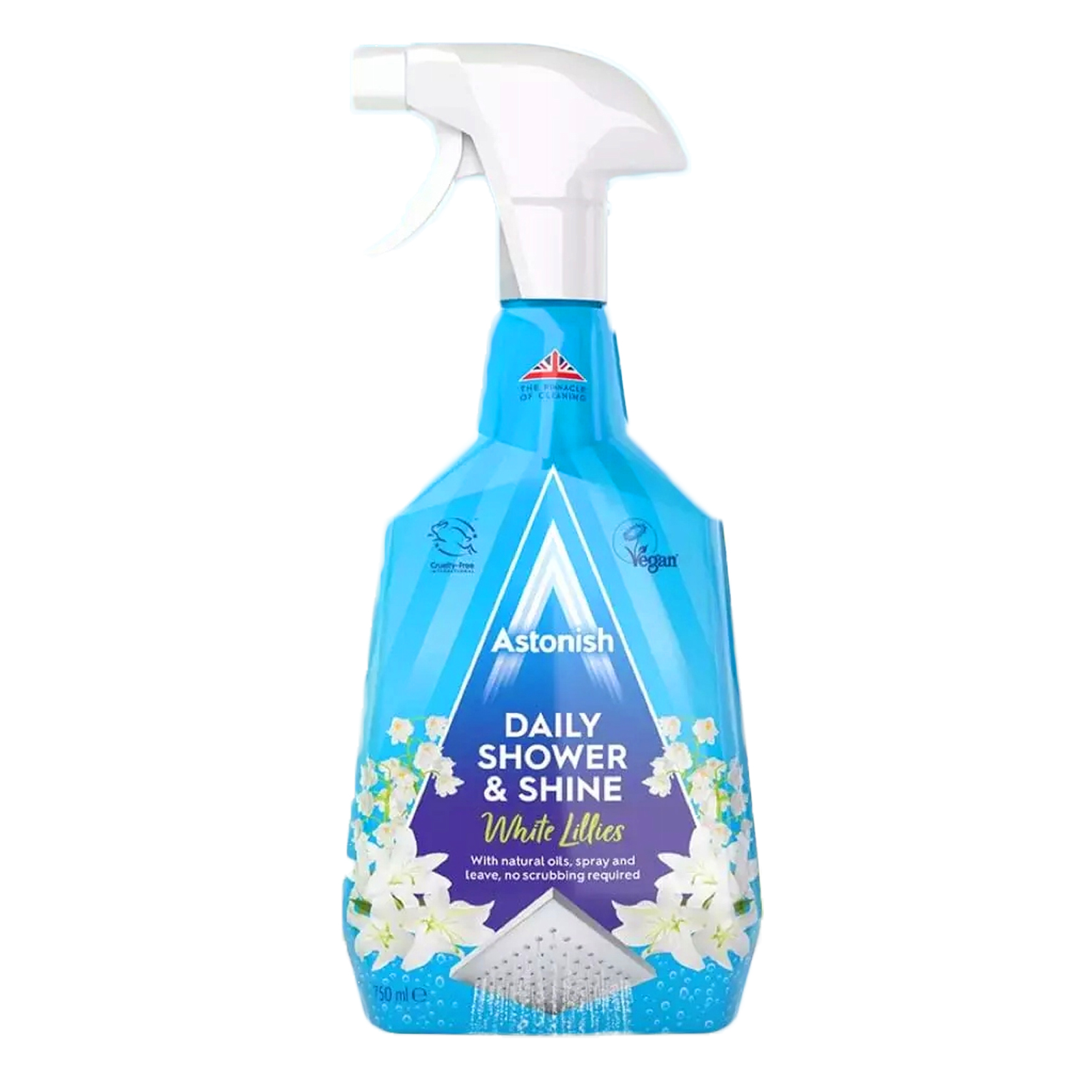 To vegansko čistilo za tuš Astonish z vonjem belih lilij zagotavlja popolnoma čist in svež občutek v vaši kopalnici. Njegova posebej zasnovana formula odstranjuje umazanijo, milo in prah, ki se nabere med vsakodnevno uporabo prhanja.