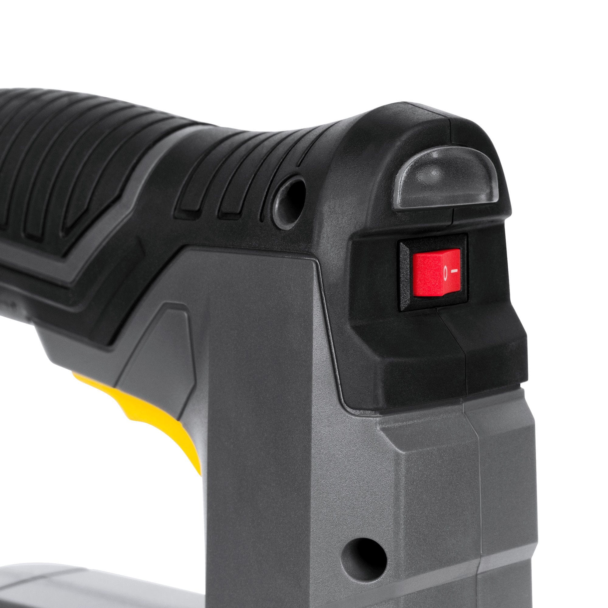 Z 4V litij-ionsko baterijo ta žebljalnik in sponkač zagotavlja dolgo življenjsko dobo baterije in hitro polnjenje, kar vam omogoča, da brezskrbno opravite vsako nalogo. Ergonomsko oblikovan ročaj in kompaktna zasnova omogočata udobno uporabo tudi na težko dostopnih mestih, medtem ko intuitivni uporabniški vmesnik omogoča enostavno upravljanje.