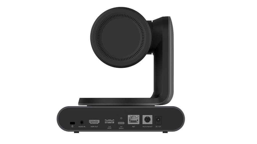 Dvojna 4K kamera: panoramska + PTZ kamera. Vidno polje (FOV): 90°. Možnost 180° rotacije kamere. 12-kratni optični zoom / 3-kratni digitalni zoom. Povezljivost – USB: Plug-and-Play. Napajanje: PoE+ (Power over Ethernet) prek Cat5e kabla. Avtomatsko kadriranje – prilagodi pogled kamere za. Celoten opis