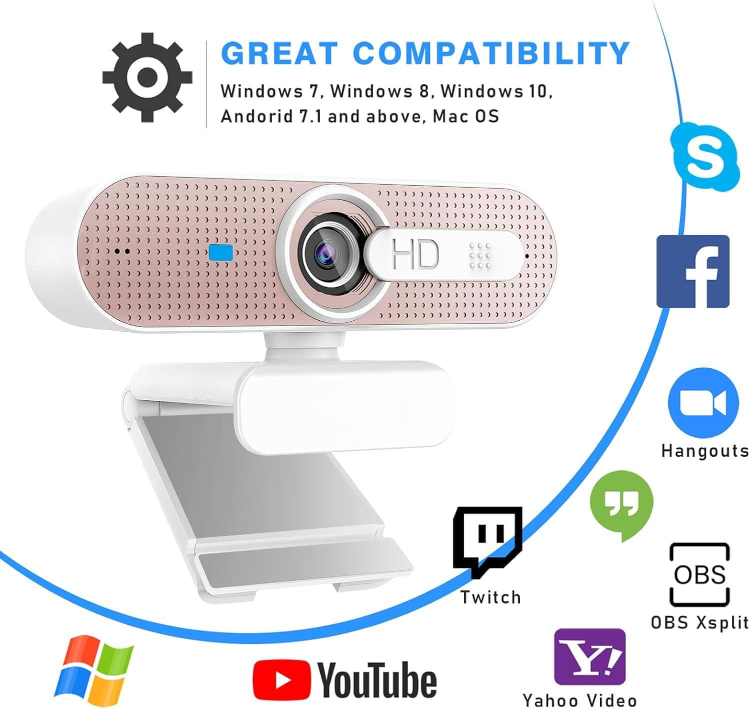 ASHU USB 1080P ROSE GOLD RAČUNALNIK, SPLETNA KAMERA, MIKROFON SAMODEJNO OSTORJENJE Celoten opis