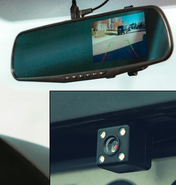 • Dvosmerni video snemalnik v vzvratnem ogledalu + kamera za vzvratno vožnjo
