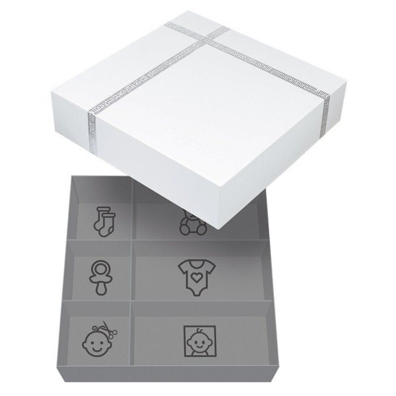 • škatlo lahko s priloženimi deli razdelite na 6 delov, v katere lahko shranite otrokove lase, prve zobe in druge dragocenosti