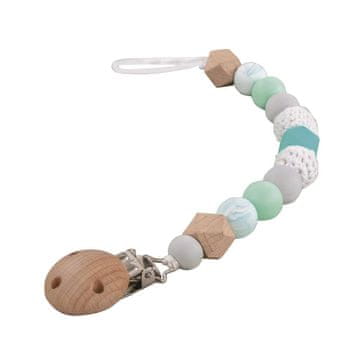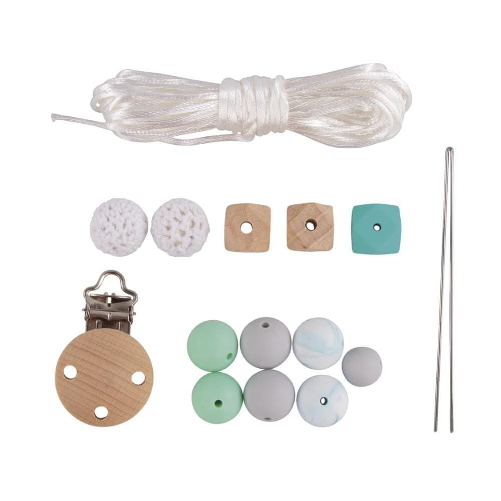 Ustvarjalni set: Držalo za dudo Barva: Mint Set vsebuje: – 1.5m vrvico za nizanje perl debeline 1.5mm – Leseno ščipalko za pritrditev na obleko – 2 x lesene perle – 8× silikonske perle – 2× kvačkane perle – Igla za nizanje perl OPOZORILO! Celotno držalo dude (zaponka, trak, vpenjalni obroček) … Celoten opis