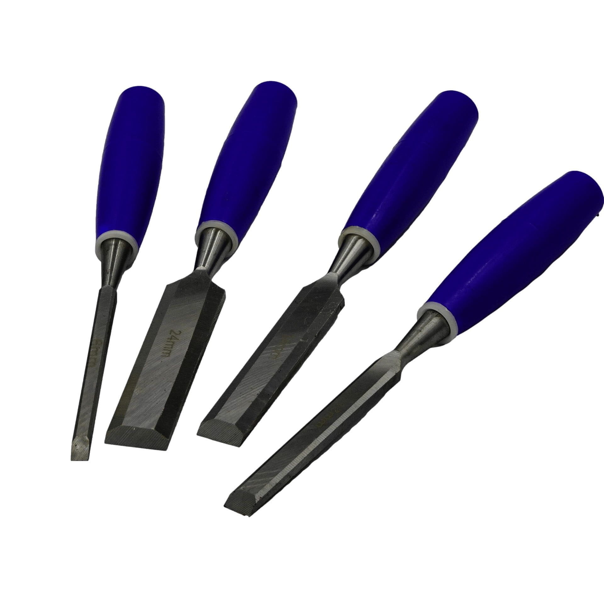 Ploščata dleta s štirimi širinami rezil – 6 mm, 12 mm, 18 mm, 24 mm in skupno dolžino 240 mm. Izdelano iz visokokakovostnega kaljenega jekla. Rezilo je opremljeno z mikro poševnico, zahvaljujoč kateri imate večji nadzor nad linijo kovanja. Ploščato dleto bo odlično za vrtanje kanalov, dolbenje utorov in vdolbin, kovanje in se lahko uporablja kot naprava za nabijanje. Ustvarjanje skulptur, lesenih predmetov, vrtnih okraskov – odslej bo to lažje, hitrejše in prijetnejše.