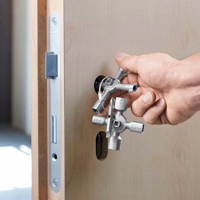 Večnamenski ključ za zapirala, ki se uporabljajo v tehničnih stavbnih inštalacijah (ogrevalni in sanitarni sistemi, klimatski in prezračevalni sistemi, električne inštalacije), sistemih za oskrbo s plinom in vodo ter v zapiralnih sistemih. Celoten opis