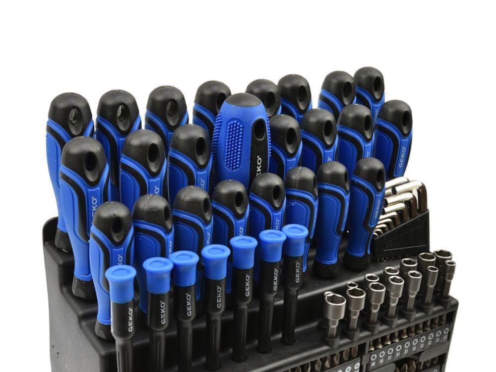 GEKO Set izvijačev, nastavkov, nasadnih ključev 122 kosov G32007