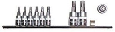 Garnitura ključev Torx peterokotnih z luknjoVključuje ključ Torx peterokotnih z luknjo;- 1/4 palca:TS 10, TS 15, TS 20, TS 25, TS 27, TS 30Dolžina z nastavkom 37 mm- 3/8 palca:TS 40, TS 45, TS 50Dolžina z vtičnico 58 mmMontira se na kovinsko vodiloHrom-va Celoten opis