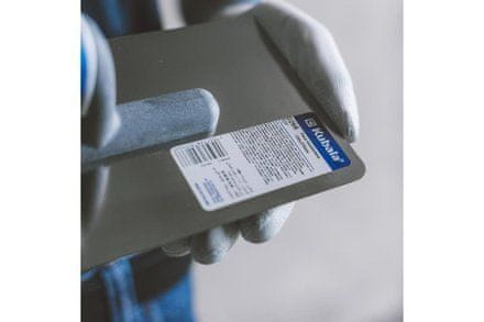 gladka gladilka iz nerjavečega jekla – dva zaobljena vogala 130 × 270 mm ergonomski, dvokomponentni plastični ročaj nerjaveča, kislinsko odporna pločevina debeline 0,7 mm zahvaljujoč zaobljenim. Celoten opis