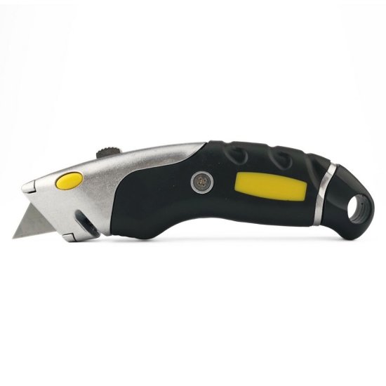 - ta zložljivi nož ima trapezoidno rezilo velikosti 19 × 60 mm in trpežno aluminijasto konstrukcijo