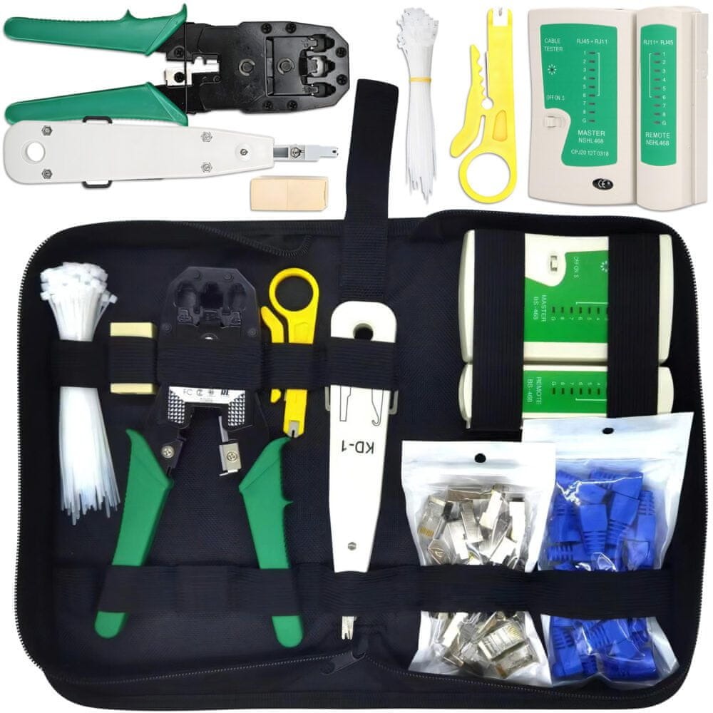 Tester kablov – hitrost in natančnost testiranja kablov, odkrivanje različnih vrst napak, lokalizacija težav v omrežju, 4/6/8 P crimper, LSA Pusher. Set je sestavljen iz do 146 elementov v praktičnem kovčku. Celoten opis