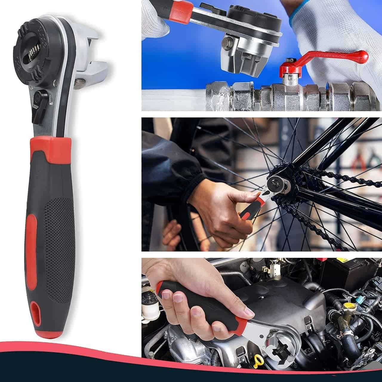 Netscroll Nastavljiv nasadni ključ, idealen za avtomehanike, gradbena dela, domača popravila; ergonomski ročaj, visokokakovostno jeklo, velik navor, enostavna uporaba, moška darila, Ratchet