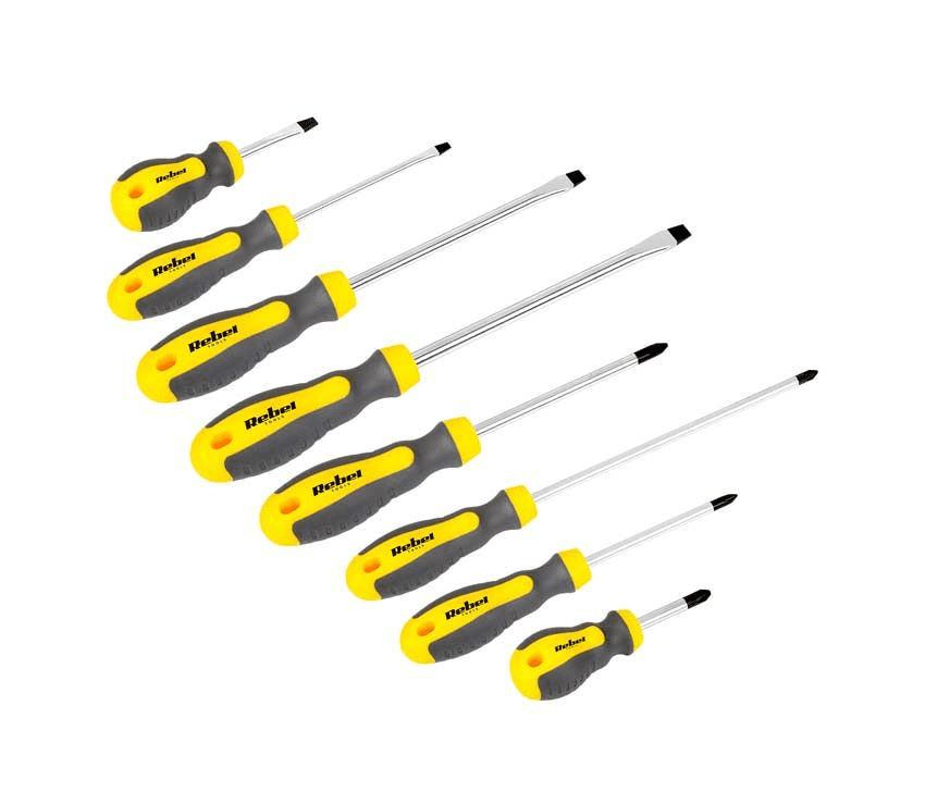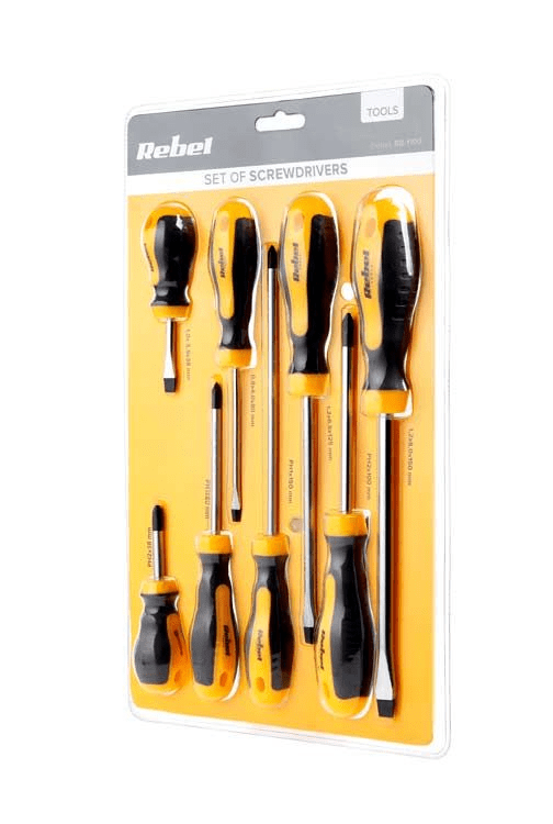 Komplet izvijačev REBEL imajo anti-slip ročaje ergonomske oblike, da bo uporaba enostavna. Primerno so za razna opravila tako doma ali v službi. V kompletu so 4 ravni in 4 križni izvijači. 8 izvijačev v kompletu