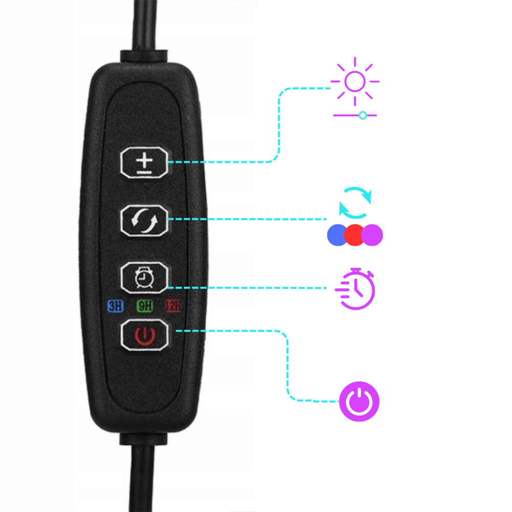 , ki omogoča , da količino svetlobe popolnoma prilagodi potrebam vaših rastlin . Vgrajen ČASOVNIK (3h, 9h, 12h) vam omogoča samodejni izklop svetilke, tako da imate popoln nadzor nad časom, ki ga vaše rastline preživijo pod osvetlitvijo. Ta