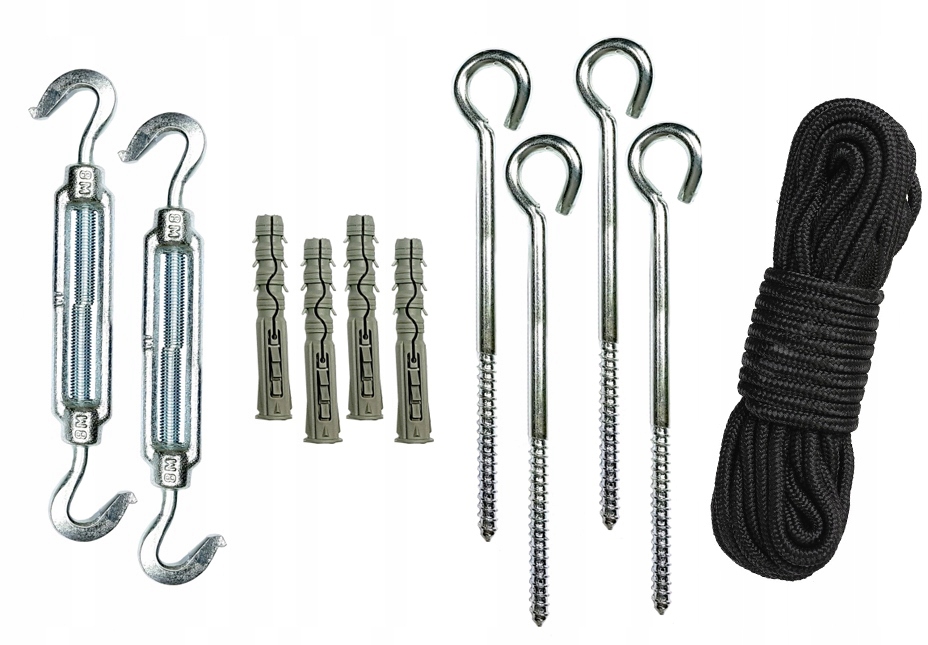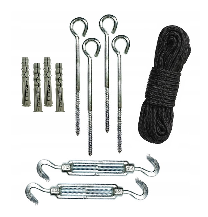 ☀️ Komplet za montažo senčnega jadra: vrv, natezniki, vijaki s kavljem, mozniki. ☀️