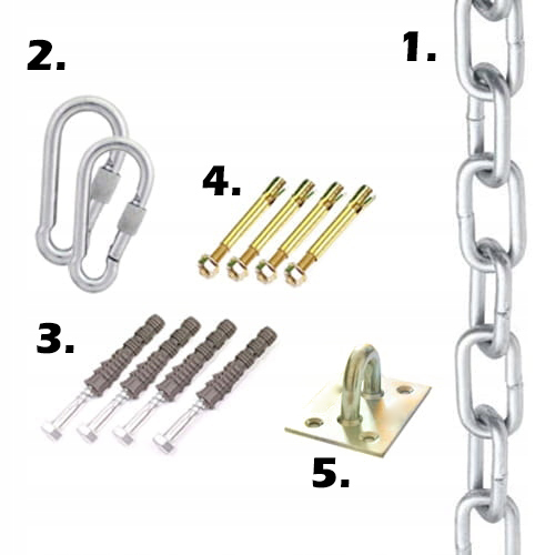 močne verige (dolge 1 meter), dveh trdnih vponk, debelega jeklenega stropnega nosilca ter štirih razteznih sider in vijakov . Vsak element je bil zasnovan z mislijo na vzdržljivost, trdnost in enostavno montažo. To vam omogoča, da svoj prostor za sprostitev ustvarite hitro, enostavno in predvsem varno. ❗️❕POLSKI IZDELEK❗️❕