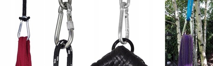 2. Dva karabinka, , ki se z verigo pritrdita na stropni nosilec in viseči sedež.