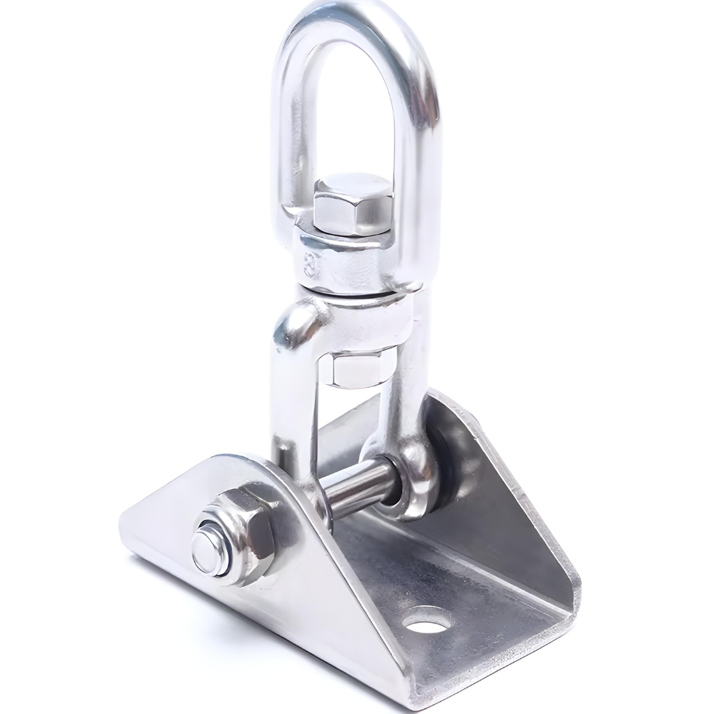 1. Močan stropni nosilec iz debele jeklene pločevine, opremljen z vrtljivim pritrdilnim očesom.
