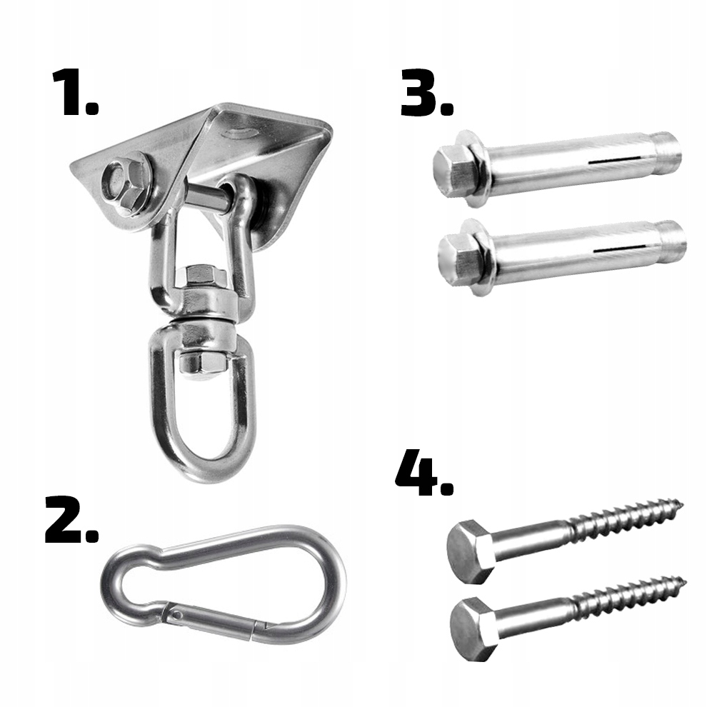 ⚫️ Komplet za montažo: STROPNI NOSILEC ▪️ KARABINJI ▪️ SIDRA ▪️ MOZNIKI ▪️ VIJAKI