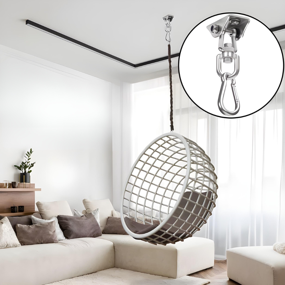 1️⃣ Viseči vrtni stol: Namestite stropni nosilec na balkon ali verando, da obesite stol, kjer se lahko sprostite in uživate v razgledu.