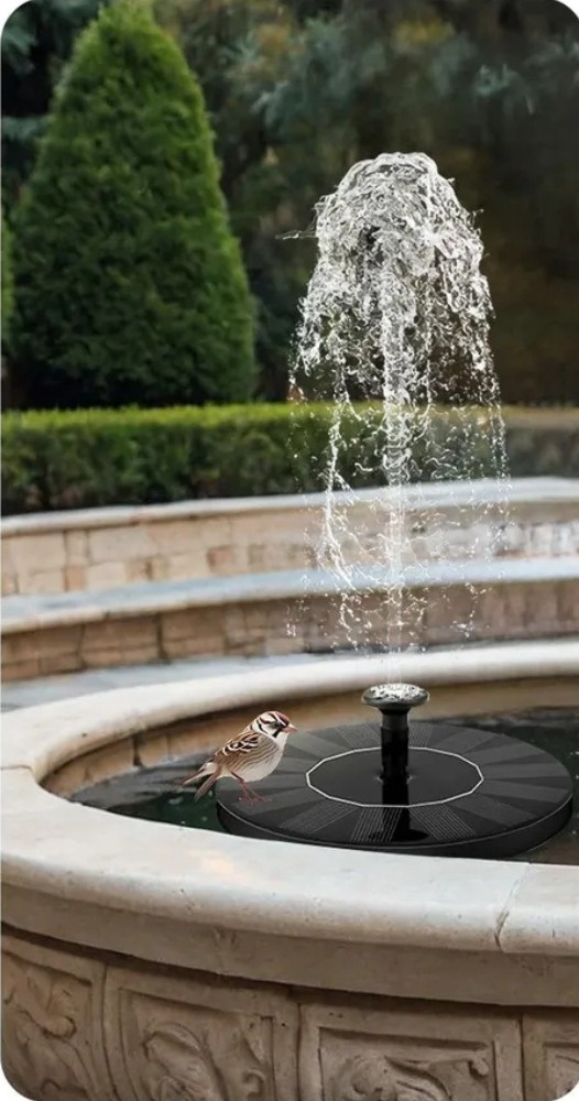 - sončna fontana je okolju prijazna rešitev, ki ne ustvarja stroškov električne energije. Napravo preprosto izpostavite soncu, da začne delovati, kar je ekonomično in ekološko. enostavnost namestitve in uporabe: