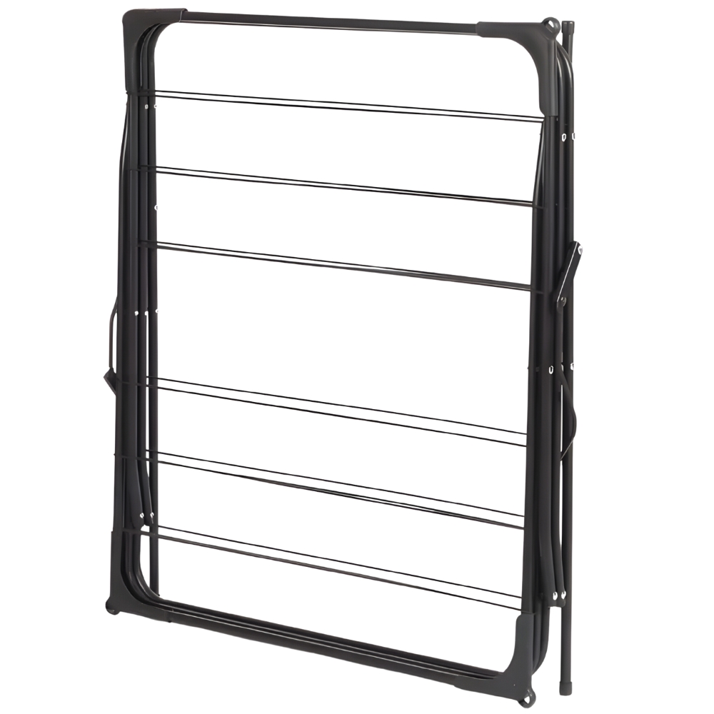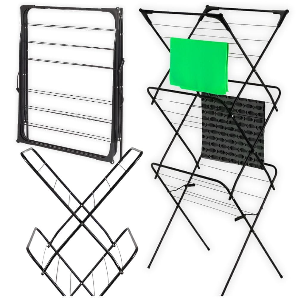 Masivno stojalo za sušenje perila, izdelano iz kovine s prašnim premazom v mat črni barvi, nima le praktične funkcije, temveč se tudi dobro vidi v vaši notranjosti. Ni bolj elegantne barve kot temno črna! LAVADO je zanesljiva kombinacija estetike in uporabnosti! ✨ IZJEMNO STABILEN