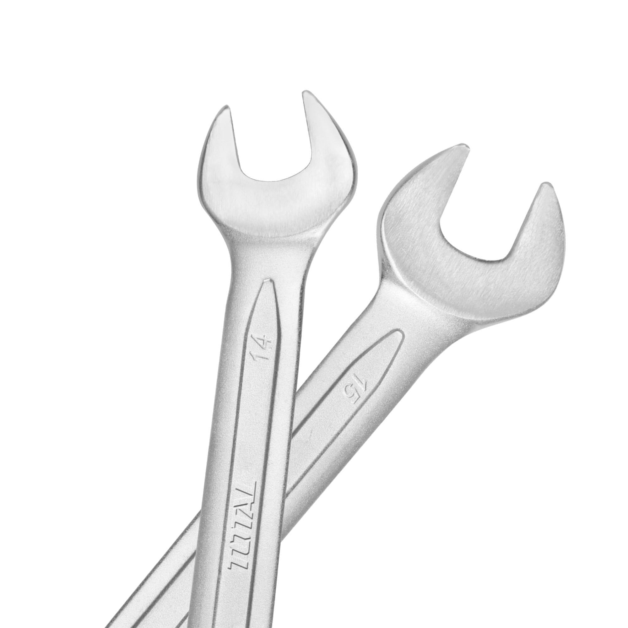 Nabor kombiniranih ključev TOTAL THT102386 (Industrijska serija) vključuje 8 profesionalnih zatičnih orodij. Uporabljajo se pri montaži matic in vijakov. To je univerzalni nabor, ki vključuje ključe najpogostejših velikosti – 6×7mm, 8×9mm, 10×11mm, 12×13mm, 14×15mm, 16×17mm, 18×19mm, 20×22mm. Orodja se natančno ujemajo s profilom priključkov, kar zmanjšuje tveganje za njihovo poškodbo pri montaži. Vsa orodja so izdelana iz krom-vanadijevega jekla, dobro polirani, zato odlično opravljajo svoje funkcije in imajo dolgo življenjsko dobo. Zahvaljujoč posebnemu plastičnemu nosilcu je zagotovljeno kompaktno shranjevanje in enostavno prenašanje.