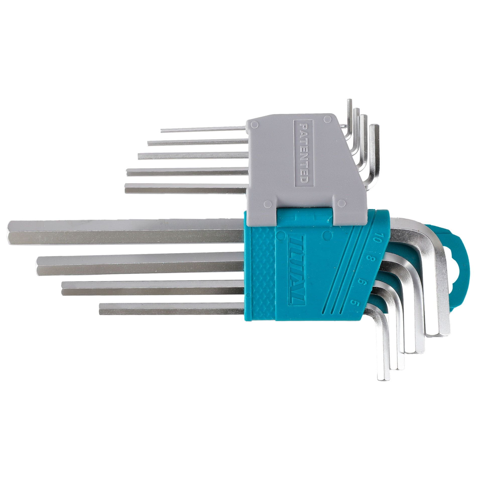 set imbus ključev TOTAL THT106191 (serija industrial) vsebuje 9 ročnih profesionalnih orodij za montažo in demontažo pritrdilnih elementov s šestkotno odprtino. set je uporaben v garaži, avtomehanični delavnici, na proizvodnji ali doma. Ključi imajo podaljšano ročico, kar povečuje njihovo funkcionalnost Velikosti ključev se gibljejo od 1,5 do 10 mm. Izdelani so iz visokokvalitetnega, toplotno obdelanega ogljikovega jekla Cr-V, kar jim daje visoko trdnost in vzdržljivost Kromiranje površine naredi ta orodja odporna proti koroziji. Plastični držalec omogoča kompaktno shranjevanje in prenašanje kompleta.