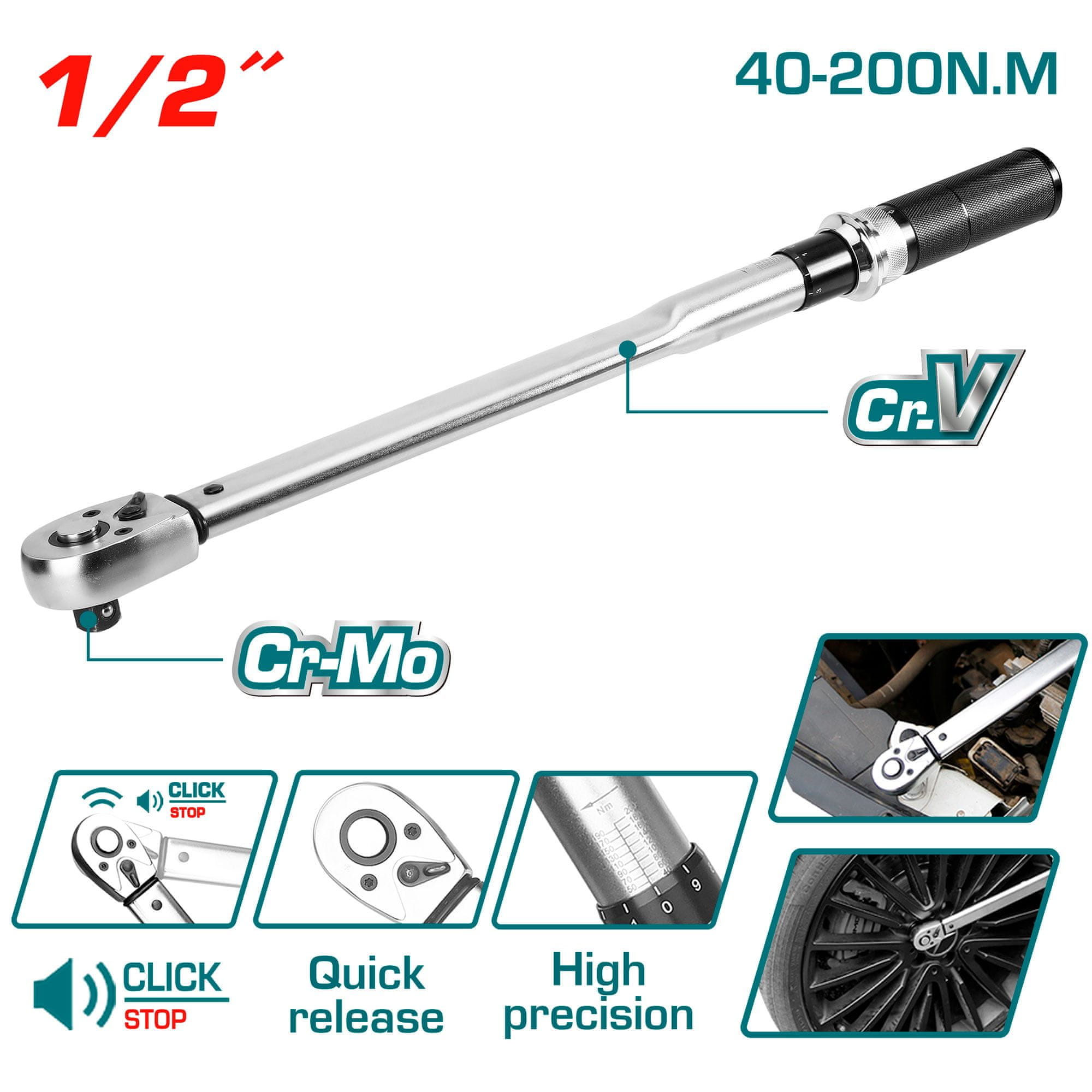 Total One-Stop Tools Momentni ključ 500 mm, 40-200 N.m, / INDUSTRIJSKI (THPTW200N2)