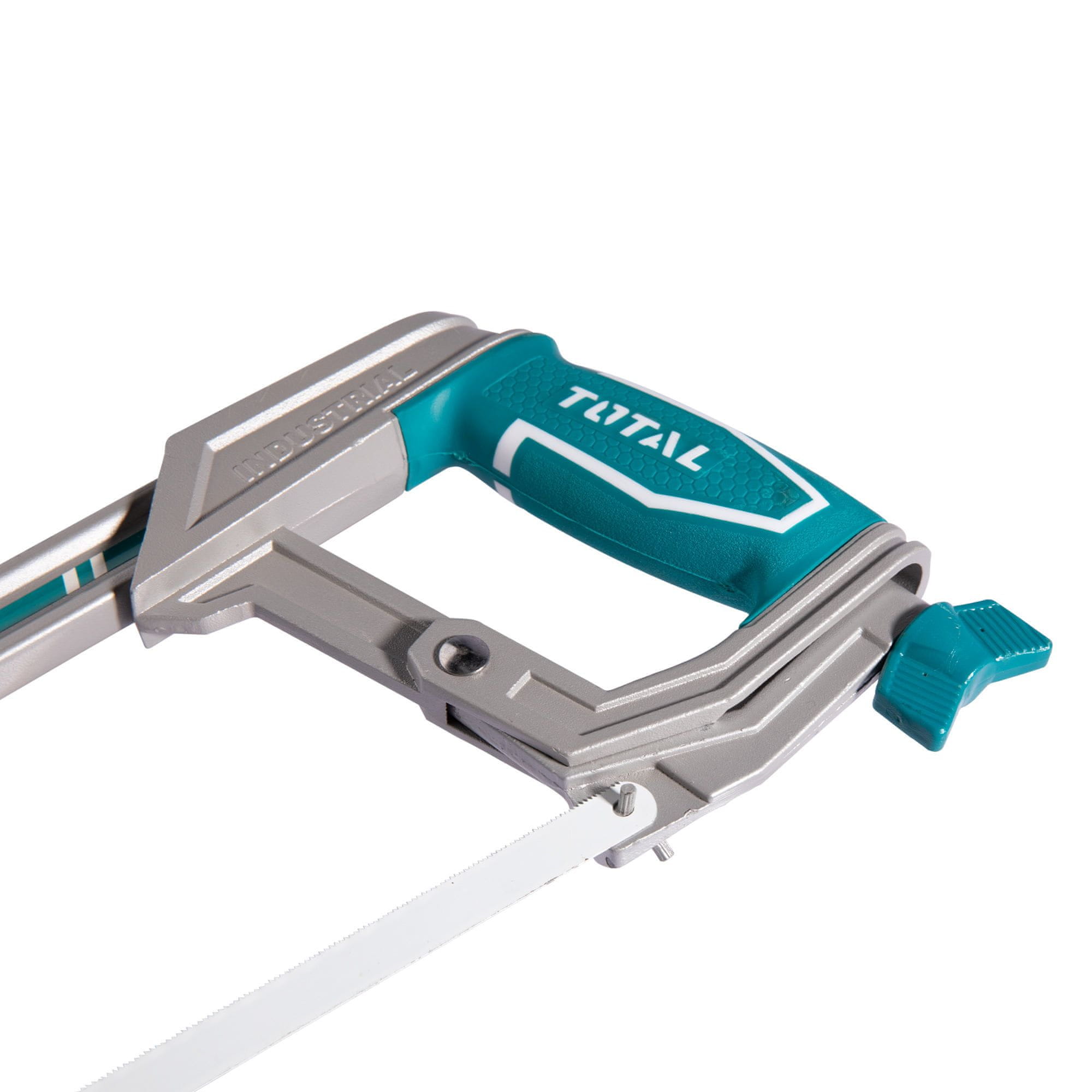 Žaga za kovino TOTAL THT54106 (serija industrial) je namenjena za rezanje kovinskih delov, profilov, ploč, pa tudi plastike in lesa. Velikost rezila – 300 mm / 12", število zob na palec (TPI) – 24. Nastavljiv kot rezila – 45º in 90º. Material rezila je legirano jeklo 65Mn, kar omogoča dolgotrajno uporabo žage brez obrabe. Napetost rezila je mogoče nastaviti s posebnim vijakom. Zaradi edinstvenega dizajna, močne konstrukcije in ostrine rezila, žaga omogoča hitro in enostavno rezanje kovine različne debeline in gostote. Mehanizem za hitro menjavo rezila povečuje učinkovitost orodja. Žaga je opremljena z dvokomponentnim ergonomskim ročajem iz udarne odpornosti materiala s posebnim protizdrsno premazom (aluminij+ABS+TPR), kar močno zmanjšuje vibracije pri uporabi tega modela.