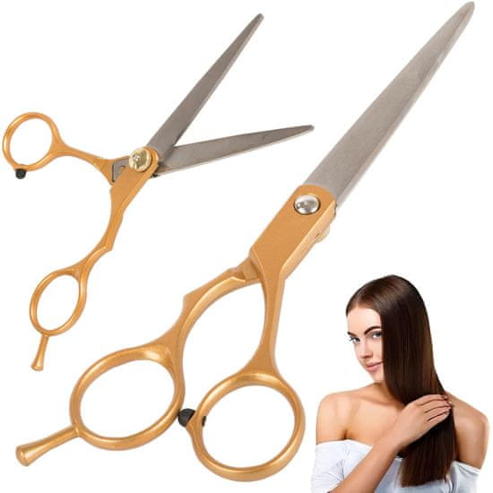 Zlate barve škarje dodajo pridih elegance in stilu, kar bo zagotovo pritegnilo pozornost vaših strank. Poleg tega so škarje tudi odporne na korozijo, kar pomeni, da bodo ostale sijoče in brez rje tudi ob redni uporabi.