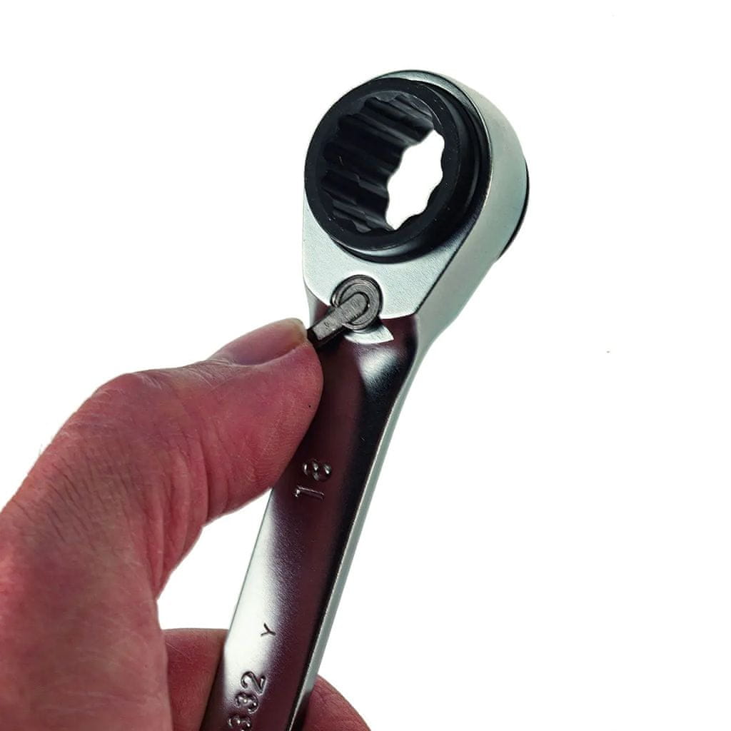 - 8 velikosti v 2 ključih: Združuje 8, 10, 12, 13, 16, 17, 18, in 19 mm, kar prihrani prostor in težo.
