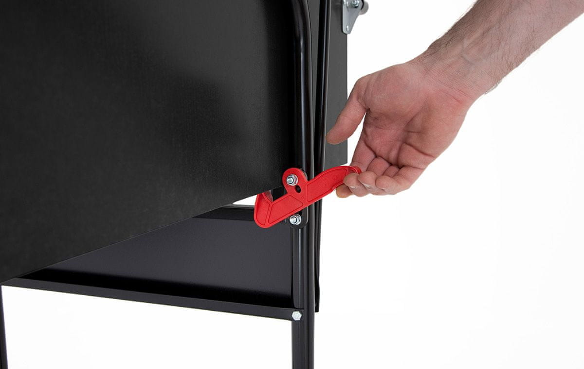 Celotno konstrukcijo mize lahko preprosto zložite tako, da obe krili nagnete navzgor. Mehanizem za zlaganje in podnožje sta izdelana iz visokokakovostnih kovinskih profilov z okroglim premerom 25 mm. Poleg tega lahko mizo zložite takoj po končani igri, ne da bi bilo treba razstaviti mrežo z napenjalci.