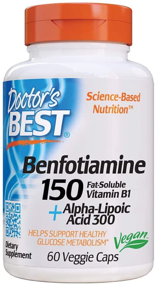 Doctor’s Best Benfotiamin z alfa lipoično kislino (vitamin B1 z lipoično kislino), 300 mg, 60 rastlinskih kapsul