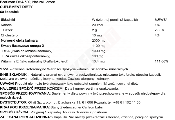 Carlson Labs Ecosmart Dha limona 60 mehkih kapsul Celoten opis