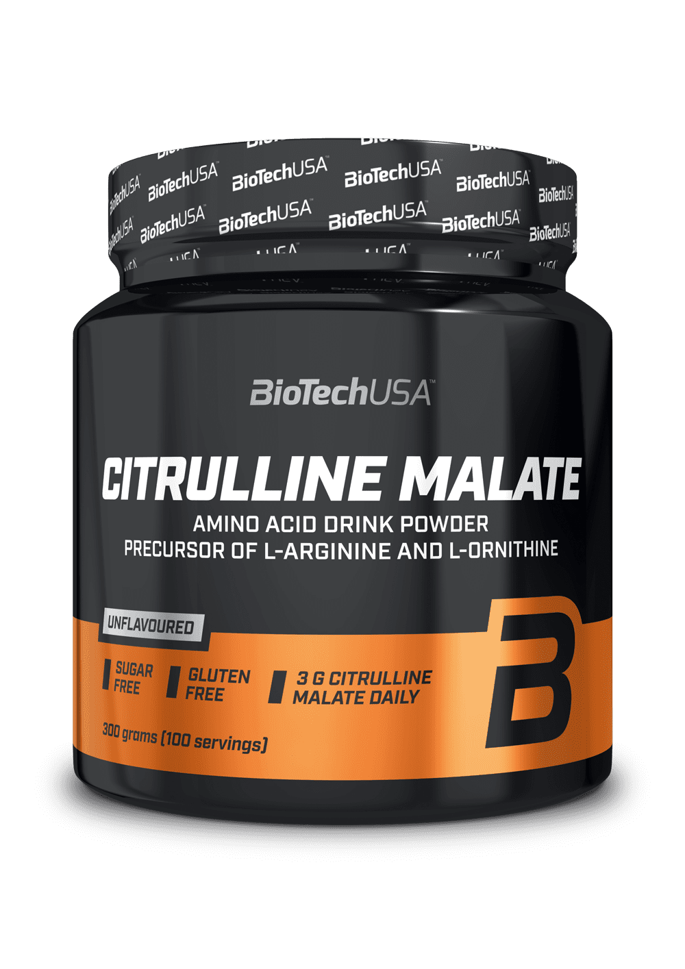 100 % čista aminokislina L-citrulin malat v prahu. L-citrulin je neesencialna (pogojno esencialna) aminokislina, mikrohranilo, ki ga telo ne more proizvesti v zadostnih količinah, običajno med intenzivno vadbo, zato je potrebno dodajanje v obliki prehranskih dopolnil. Za športnike je pomemben, ker ob zaužitju pred telesno vadbo spodbuja telesu lastno proizvodnjo dušikovega oksida, ki pomaga pri pretoku krvi v obremenjene mišice. Citrulin je v velikih količinah na primer v lubenici. Sinergijska kombinacija aminokisline L-citrulina in jabolčne kisline je L-citrulin malat. Jabolčna kislina (malat) je organska kislina, ki se pojavlja v naravi (na primer v jabolku). Iz aminokisline L-citrulina sta sestavljeni aminokislini L-arginin in L-ornitin. Gre za formulo, ki je zelo priljubljena med športniki. Priporočeno odmerjanje: – 1,5 g beljakovin: