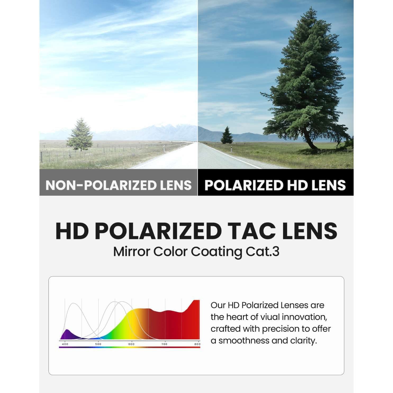 Uživajte v kristalno čistem pogledu skozi polarizirane HD leče. Zmanjšajte vizualno utrujenost, ki jo povzroča popačenje.