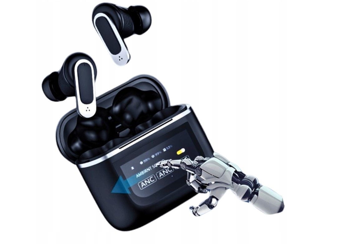 BergMont BREZŽIČNE BLUETOOTH SLUŠALKE V9 Zaslon na dotik in izboljšano zmanjšanje šuma ANC, Bluetooth 5.4, HD mikrofon, Vodoodpornost, Šport, Univerzalna združljivost, Izenačevalnik s 5 načini, Črna