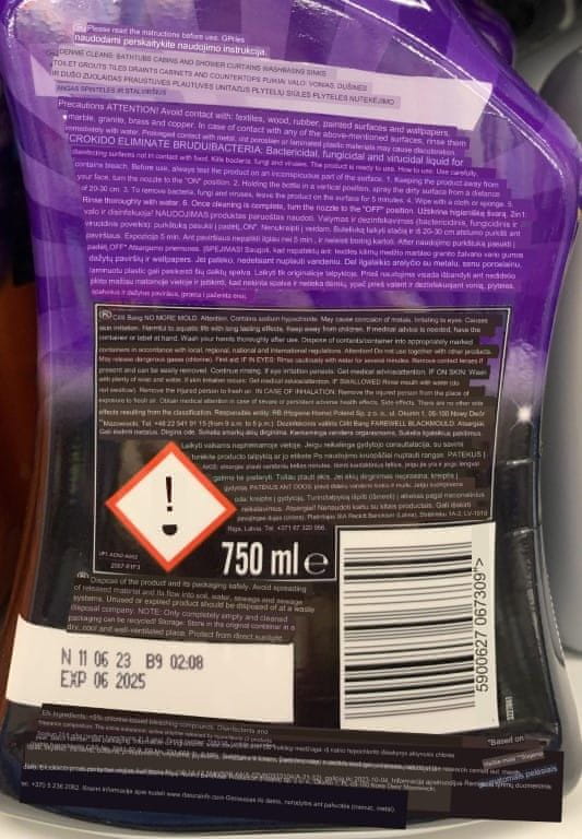 • Pozor! Ne uporabljajte na tekstilu, lesu, gumi, barvanih površinah in tapetah, marmorju, granitu, medenini in bakru. Pred uporabo izdelek vedno preizkusite na neopaznem mestu (vsaj 5 minut pred uporabo).