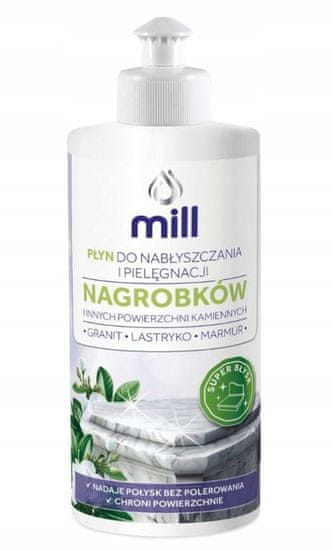Tekočina za poliranje nagrobnih spomenikov Mlin je zanesljiv pripravek za nego in zaščito kamnitih površin kot so granit, marmor in teraco. Zahvaljujoč svoji formuli daje tekočina čudovit sijaj brez poliranja, hkrati pa ščiti površino pred zunanjimi dejavniki. Redna uporaba zagotavlja trajno zaščito in estetski videz nagrobnikov in drugih kamnitih površin.