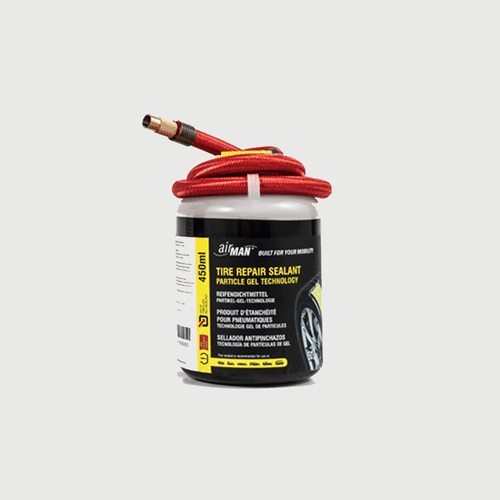 - steklenička s tesnilno maso) je zasnovan za štirikolesnike, majhne kompaktne avtomobile in srednje velike avtomobile. 450 ml steklenička je posebna tesnilna masa lahko zatesni defekte do 6 mm. Ne več ta tesnilna masa ne poškoduje senzorja TPMS/RDKS. (senzorja tlaka v pnevmatikah).