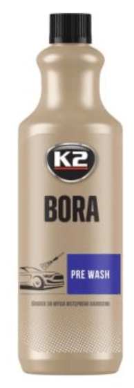 K2 Bora Plus sredstvo za predpranje vozil, kombijev in tovornjakov. Odlično odstranjuje vse vrste umazanije (ne odstrani voska). Ne razbarva tesnil, kromiranih in plastičnih elementov. Lahko ostane na površini dolgo časa in je ne poškoduje. Ne pušča belega madeža.