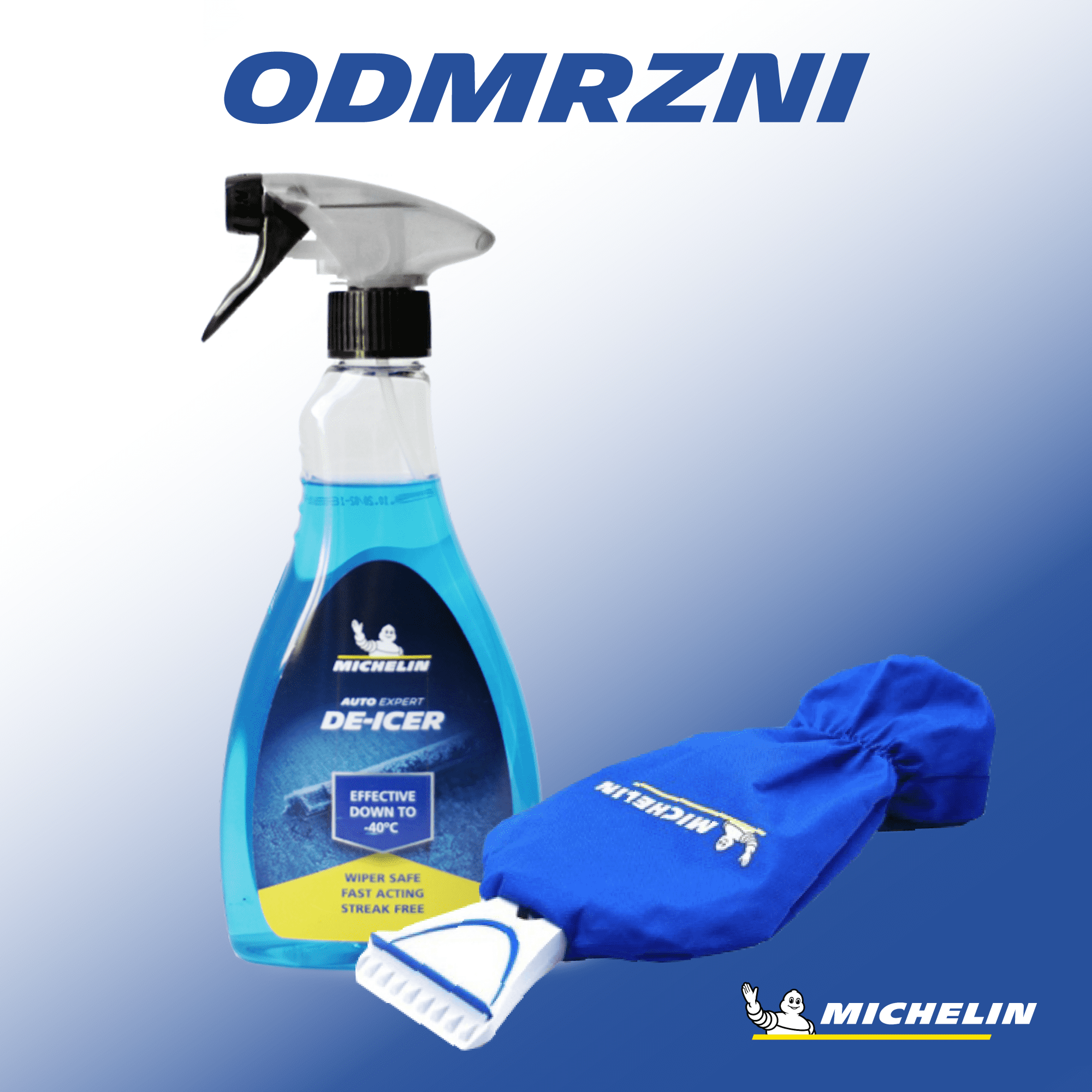 NAVODILA: Poškropite po površini in počakajte da deluje, nato pa vetrobransko steklo očistite. + MICHELIN Strgalo za led z rokavico